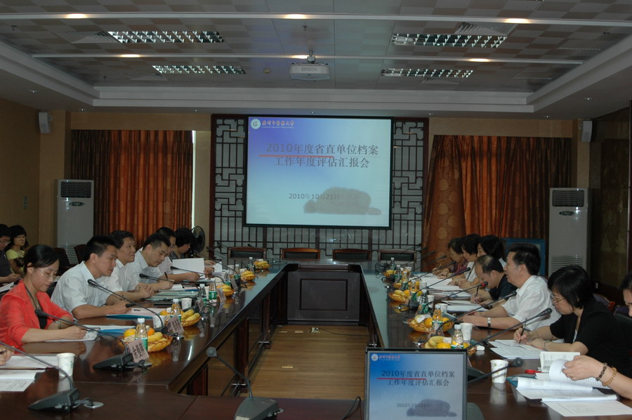 10月21日上午,省档案局监督指导处钟伦清处长带领省档案局专家组莅临beat365官网,开展2010年度省直单位档案工作年度评估工作。专家组的正、副组长分别由中山大学档案馆黎启业馆长、广东药学院档案室王小丽主任担任,成员包括广州体育学院档案室张玫主任、广州体育学院评估办公室曲毅主任、广东农工商职业技术学院档案室陈琪主任、广东轻工职业技术学院档案室范红主任。