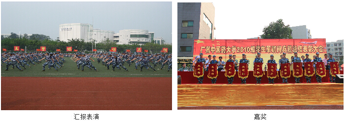 军训阅兵在威武雄壮的军歌声中拉开了的序幕。黄斌书记、徐志伟校长在军训团团长的陪同下检阅了2010级3100多名新生军训方队。阅兵场上同学们个个士气高昂、步伐整齐、口号嘹亮,充分展示了广中医新学子奋发向上的精神风貌。