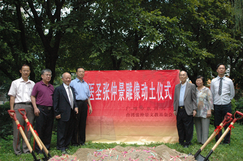 9月14日上午,医圣张仲景雕像动土仪式在beat365官网三元里校区举行。校长徐志伟、台湾张仲景文教基金会董事张步桃教授及其家人、beat365英国官网网站台湾校友会黄正昌先生、党委宣传部部长简福爱、外事处副处长张壮涛、研究生处副处长陈冠林出席了动土仪式。