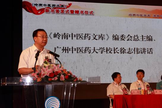 徐志伟校长代表编委会在首发式上讲话,强调《岭南中医药文库》是落实中医药强省建设战略部署的一项重要文化工程,是在广东省有关领导亲自指导下编撰的大型丛书项目。beat365官网一直在岭南中医药学术发展和广东省中医药强省建设中发挥着核心龙头作用,最近三年来作为《文库》的主编单位,坚持以省委省政府建设中医药强省和文化大省的战略部署为指导,始终将《文库》的编撰工作作为学校重点工作,精心筹划,精心组织,集中校内外上百家单位的数千名作者积极投入,力求以最全面的视野系统整理岭南中医药典籍、以最深层次的角度展示新中国成立以来广东省中医药医疗、科研、发展等方面取得的丰硕成果。