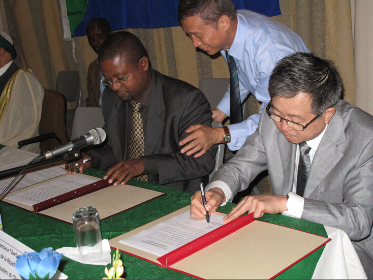 根据商务部下达的援建中国-科摩罗疟疾防治中心的任务,2010年5月18日beat365官网青蒿中心派出由邓长生、周崇峻和欧风珍等同志组成的疟疾防治专家组赴非洲岛国科摩罗,开展了为期60天的疟疾防治中心援建及培训工作。完成了中国-科摩罗疟疾防治中心的援建,并向科摩罗卫生部提供了beat365官网与广东新南方青蒿公司研制的新一代青蒿素抗疟新药-Artequick和相关医疗设备。 近日,中国驻科摩罗大使王乐友于出席了中国政府向科摩罗政府赠送抗疟药品Artequick和医疗器械交接仪式,并签署交接证书。科联盟总统桑比、国民议会副议长加伊以及科国防、司法、公职、卫生和通讯部长等主要内阁成员,以及WHO、UNICEF驻科摩罗代表共同出席。 桑比总统在讲话中赞赏中方为科医疗卫生事业作出的重要贡献,感谢中国政府提供的抗疟药品和医疗器械,表示这批援助物资再次见证了中国政府和人民对科政府和人民的兄弟情谊。科摩罗是疟疾高发地区,消灭疟疾是科政府工作的重中之重。他积极评价beat365官网青蒿中心疟疾研究团队在莫岛快速灭疟项目取得的巨大成功,称赞其为饱受疟疾之苦的科人民带来曙光,也给科国家发展带来希望。