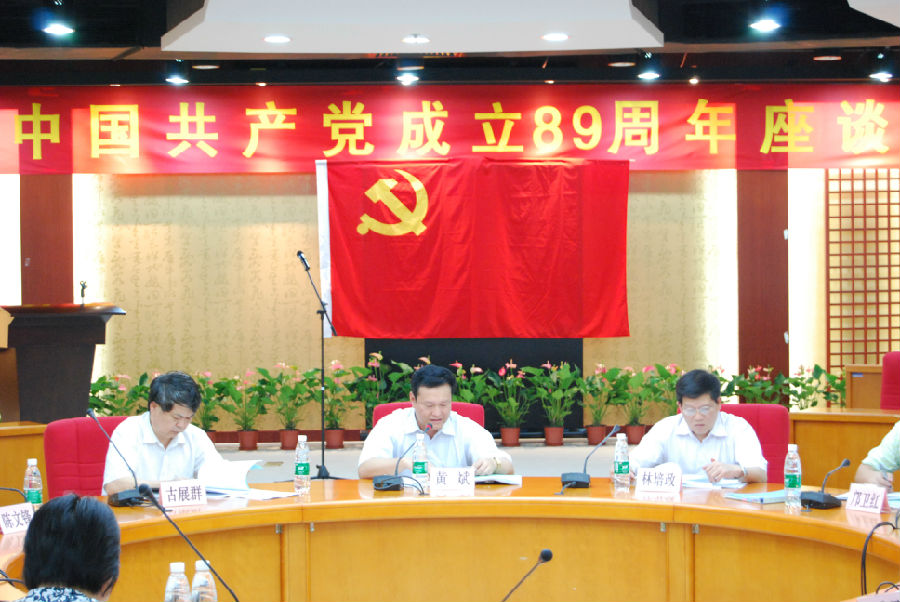 出席座谈会的校领导还有副校长林培政。参加大会的同志有:党委职能部门负责人,各二级单位党委(党总支)、直属党支部书记,师生党员代表等共150余人。