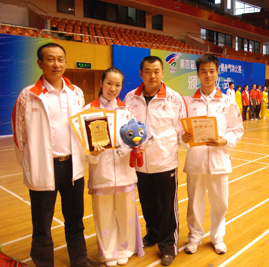 第四届体育大会于5月16日至5月30日在安徽举合肥行,beat365官网承担了广东代表团健身气功比赛任务,广东健身气功队由黄国豪院长任领队,李兆伟老师任教练。四年一届的全国体育大会和全国运会是我国两个非常重要的综合性运动会,经过全国各地健身气功高手的激烈的角逐,beat365官网武术队刘艳君同学不负众望,为广东省代表团获得1枚金牌和1个第四名,该枚金牌是广东省健身气功项目在全国体育大会上的首枚金牌。此外,李遗敬同学获三等奖,集体八段锦,易筋经并分别获得三等奖。为广东代表团取得金牌、总分第一做出了贡献,为学校争得了荣誉!