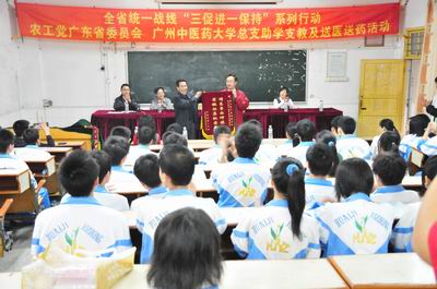最近,在农工党省委会的大力支持下,农工党大学总支主委刘启德带领总支所属四个支部的代表奔赴怀集一中。在高考前夕,将最后一个学年度的捐款交给怀集一中,为同学们备战高考鼓劲、打气。至此,农工党beat365英国官网网站总支开展的"一帮三年"的怀集一中助学支教、医疗服务活动圆满结束。从2007年的怀集调研,到2008至2010年的三年帮扶活动,大学农工总支的党员先后有80多人次参加了活动,共捐款52800元,资助优秀贫困学子76位。农工党省委会副主委魏光群,社会服务处、宣传处、办公室等负责人也多次参加并指导这一活动。2008年和2009年,在为怀集一中优秀贫困学生送出爱心捐款的同时,总支还派出内、外、眼、中医、心理科医生进行了义诊和心理咨询活动,共开出处方近300多张,求医及咨询的师生人数达600余人,送出药品5000多元,受到了怀集县委、县教育局的好评,取得了良好的社会效果。