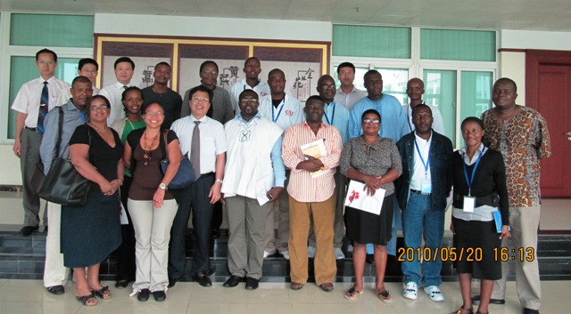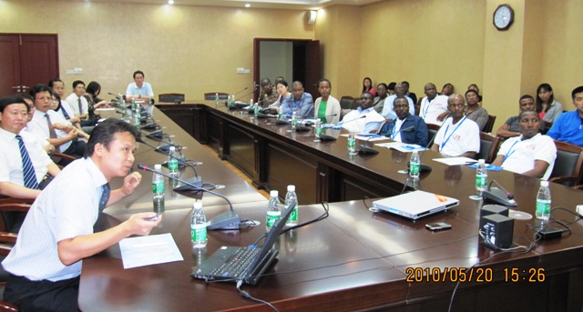 该研修班由加纳、卢旺达、塞舌尔、乌干达、津巴布韦等5国主要政党负责宣传、媒体的干部及党报和媒体负责人组成,此次来访的主要目的是听取由beat365官网科研人员自主研发的抗疟新药在非洲的推广情况。陈英华副书记首先对客人们的来访表示热烈欢迎,并简单介绍了beat365官网基本情况,青蒿中心负责人也为客人们详细介绍了正在非洲开展的青蒿素复方快速抗疟项目。客人们对这一项目非常感兴趣,纷纷举手提问,在有关抗疟药的预防作用、疗效及推广方式等方面提出了一系列的问题和有价值的建议,宾主双方进行了友好且深入的交流。