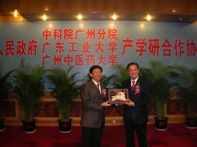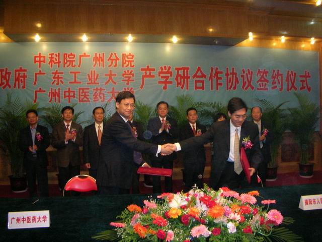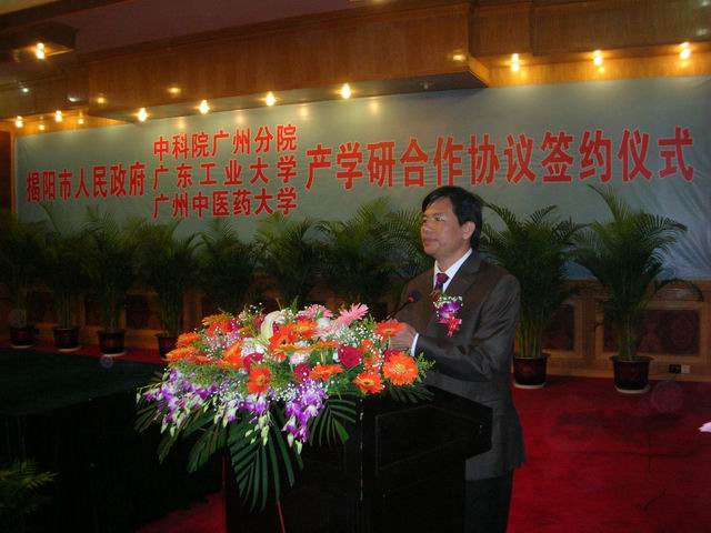 4月29日上午,揭阳市人民政府隆重举行产学研合作协议签约仪式,与beat365官网签署了校市合作协议。签约仪式简短而隆重,由揭阳市杜安义副书记主持,揭阳市委副书记、市长陈奕威对参加签约仪式的领导和嘉宾表示热烈欢迎,希望各高校、科研院所更加密切与揭阳市的产学研合作,为促进揭阳市经济发展作出新的贡献。孙晓生副书记代表beat365官网在签约仪式上讲话,刘晟副校长代表beat365官网与揭阳市政府叶少明副市长签署了校市合作协议。孙晓生副书记还与陈奕威市长互赠纪念品留念。科技处刘东辉副处长代表项目负责人与揭阳市的广东东泰乳业有限公司、康美药业股份有限公司、广东宝山堂制药有限公司签订产学研项目合作协议。