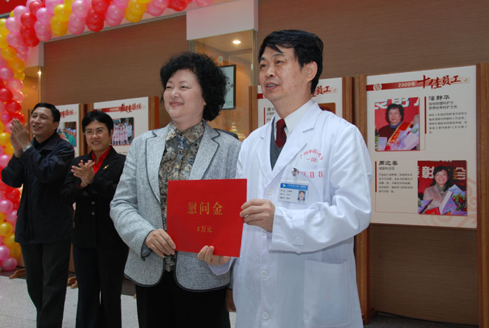 雷于蓝副省长向古展群书记转交了慰问金。樊粤光院长代表全院职工向省领导的到来表达衷心谢意,并表示将不辜负雷副省长的殷切期望,继续干好工作,2010年医院工作更上一层楼。
