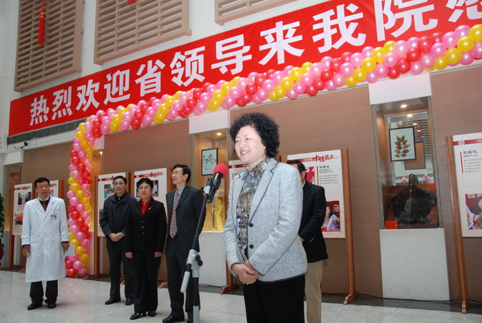 一大早,彩色的气球、红色的中国结和地毯把一附院新门诊楼大厅装饰得喜气洋洋。上午9时20分,雷于蓝副省长等省政府领导一行面带微笑来到门诊大厅,100多位医务人员身穿整洁的白大褂列队鼓掌欢迎。雷副省长代表省人民政府向一附院医务人员致以节日慰问和新春祝福。在致辞中,她肯定了一附院去年所取得的工作成绩,并转达了省政府对新一年工作的期望与祝福:过去的一年,一附院在大学、医院的领导下取得了很好的成绩,尤其在抗击甲流工作中作出了很大的贡献。感谢全体工作人员在过去一年中为市民的身体健康所作出的贡献;祝贺过去一年在医疗、科研工作中所取得的成绩;新春将至,祝大家身体健康、事业进步、家庭幸福。希望在新的一年里,一附院在建设中医药强省工作中发挥更加重要的作用,广东省政府也将一如既往地支持医院的发展。