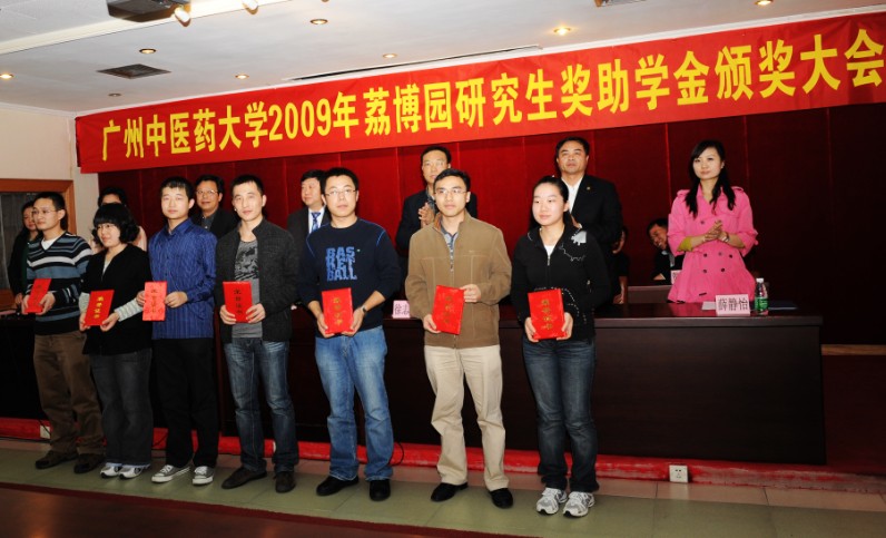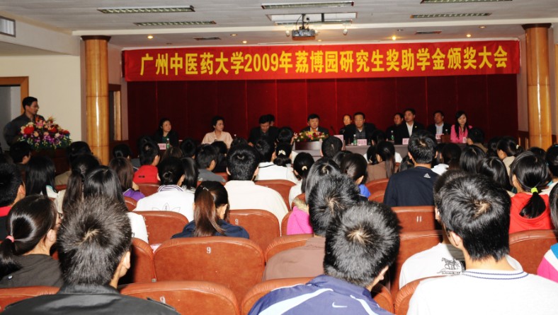 2009年11月26日,在学校办公楼多功能会议室举行了beat365英国官网网站第三届"荔博园研究生奖学金"颁奖大会。国家中医药管理局吴刚副局长、国家中医药管理局机关服务局孙涛局长、荔博园医药研究所黄银发经理,学校校长徐志伟教授、党委副书记陈英华教授及各二级单位领导出席了颁奖大会,并为获得奖励和资助的22名贫困优秀研究生颁发了奖状和资助金。