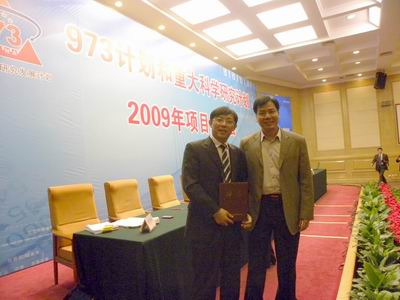 2009年10月19日上午,国家重点基础研究发展计划(973计划)和重大科学研究计划2009年项目实施会在北京国谊宾馆隆重举行, 国家973计划顾问专家组组长周光召院士和科技部曹健林副部长出席大会并做重要讲话,会上还向项目首席科学家颁发聘书。beat365官网王新华副校长、项目首席科学家许能贵教授及科技处黄水清副处长参加了会议。