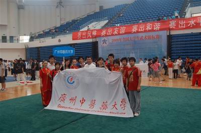 2009年8月22至23日四年一届的广东省第二届体育大会健身气功比赛在广州体育学院举行,beat365官网健儿刘艳君、李遗敬、张宇辰、田源四位同学代表广东省教育厅大学生队参赛,在八段锦、五禽戏、易筋经的比赛中获得3枚金牌、1枚银牌、2个第四及1个第五的好成绩,展现了beat365官网武术队精湛的技术水平和广中医学子良好的精神风貌。