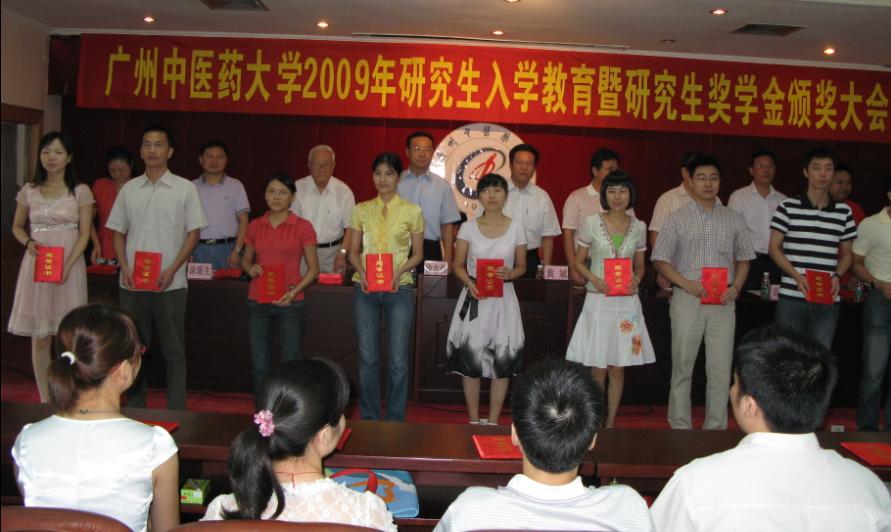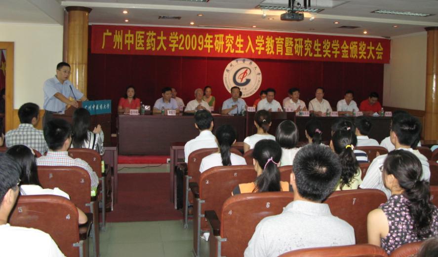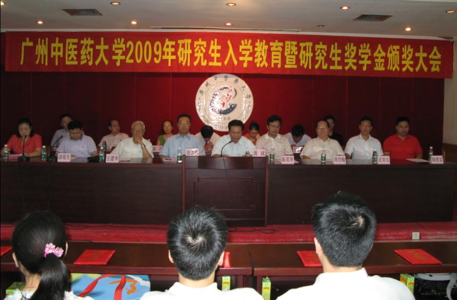 9月2日上午,在学校办公楼四楼多功能会议室举行了2009年研究生入学教育暨研究生奖学金颁奖大会,党委书记黄斌教授、校长徐志伟教授、副书记陈英华教授,全国著名中西医结合专家、学校终身教授、博士生导师王建华教授,全国著名肿瘤专家、首席教授、博士生导师,周岱翰教授、设奖企业代表,各二级单位主管研究生教育的领导及研究生处领导出席了会议。