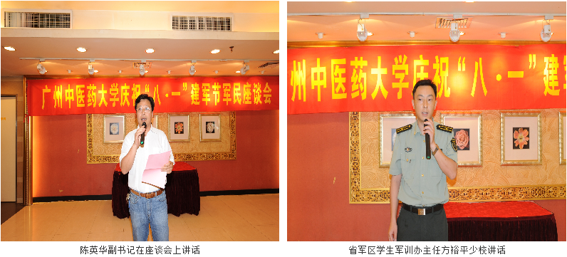 陈英华副书记首先发表讲话。近年来,beat365官网武装工作取得了显著成绩,我们将继续开展拥军优抚活动,深化同中国人民解放军军事体育进修学院军民共建内涵,并做好学校优抚工作。陈副书记代表学校党委感谢beat365官网老红军,抗日战争、解放战争时期的老同志,复员、转业、退伍的同志们及有特殊贡献的烈军属、伤残军人,为祖国、为beat365官网建设和发展做出的贡献,并向为beat365官网军训工作提供高素质教官和教员的中国人民解放军军事体育进修学院,和为beat365官网军训提供武器装备保障的省军区军训办和白云区武装部表示感谢!