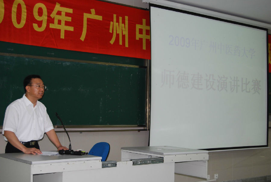本次比赛得到了学校领导的高度重视,校长徐志伟教授亲临比赛现场并做重要讲话。徐校长指出思想是行动的指南,一个合格的教师不仅要具有扎实的专业素养,更要具备高尚的思想道德素质。师德建设核心内容包括教师要热爱教育事业,爱岗敬业;热爱学生,诲人不倦;立足本职,教书育人。师德建设的外延则体现为做人与做事、合作与竞争、师承与创新等协调关系。徐校长在肯定beat365官网建校以来师德建设取得的成绩,称赞beat365官网不断涌现出的师德高尚的优秀教师的同时,提倡以"师德高尚、医术精湛"的国医大师邓铁涛教授为楷模,并对beat365官网教师队伍加强自身道德建设提出了殷切的希望和要求。