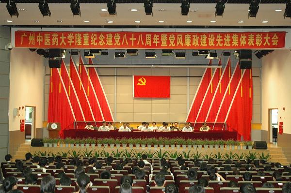 黄斌书记在讲话中指出,在纪念中国共产党成立八十八周年的时候,要更加坚定理想信念,进一步认清我们所肩负的历史使命,励精图治,为建设人民满意的中医药大学而努力奋斗。他强调,首先,进一步解放思想,全面推进学校科学发展。要努力做到"六个更加,六个着力": 一是更加强化教学中心地位,着力提高人才培养质量;二是更加注重师资队伍建设,着力培养与引进高层次人才;三是更加重视学科建设,着力提高科技对经济社会发展的贡献度;四是更加致力于体制机制创新,着力激发办学积极性和创造性;五是更加关注民生,着力构建和谐校园;六是更加突出党的领导核心作用,着力加强与改进党的建设。