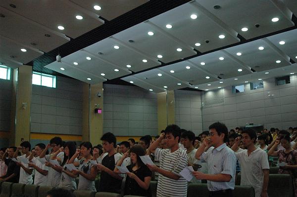 纪念大会上,在鲜红的党旗下,228名新党员举行了庄严的入党宣誓仪式,新党员代表、基础医学院青年教师郝木峰同志代表全体新党员同志发言,表达了新党员继承革命先辈光荣传统,坚定不移地走建设有中国特色社会主义道路,立志为伟大的共产主义事业奋斗终身的铮铮誓言。