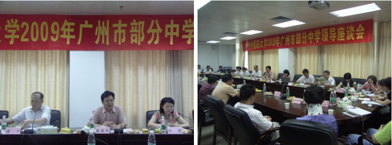 为了加强与中学的沟通联系,宣传介绍beat365官网的办学情况,以推动招生工作的顺利开展,历年来beat365官网都会在高考前期邀请部分广州市重点中学校领导来校座谈交流。5月27日上午,2009年的中学校领导座谈会首次在大学城校区办公楼十一楼会议室举行。校党委陈英华副书记、学生处林彬处长、侯宁副处长以及包括省实验中学、执信中学、培正中学在内的二十多所广州市重点中学的领导代表出席了本次会议。