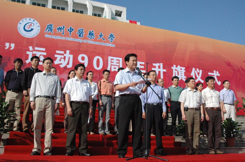 学校党委书记黄斌在仪式上做了讲话,他号召全校学生要深入学习领会胡锦涛总书记视察中国农业大学的讲话精神,继承发扬五四光荣传统。他还特别鼓励全校学生:一要自觉地以邓小平理论和"三个代表"重要思想为指导,深入学习实践科学发展观,树立正确的人生志向,把青春激情与科学理性有机结合起来,始终沿着正确的方向前进。二要努力学习,追求真理,探索真知,提高素质,增强创新意识,激发创新活力,争当创新实践的主力军。三要以舍我其谁的气概,主动承担起继承和发展中医药事业重任,把实现远大目标与完成好当前学习任务、做好本职工作结合起来,精通专业知识,加强实践锻炼,全面提高综合素质。四要不断加强修养,完善道德人格,自觉担当社会责任,对党和国家竭尽忠诚,对社会和人民奉献爱心。