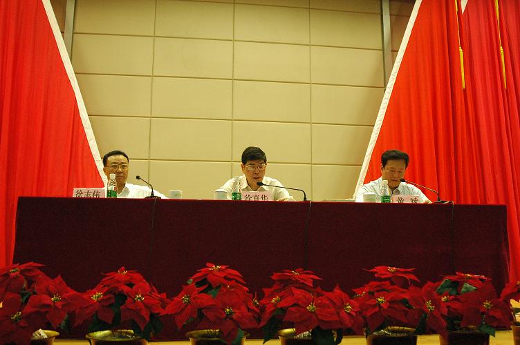 学校领导陈英华、陈蔚文参加了会议。参加会议的同志还有全体副处级以上干部,校本部党政职能部门全体干部,二级学院党政办公室主任,全体辅导员,二级单位党委(党总支)委员,教工党支部书记,思想政治理论课部分教师和师生党员代表共400多人。
