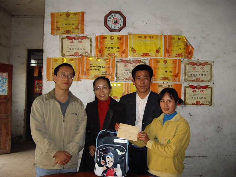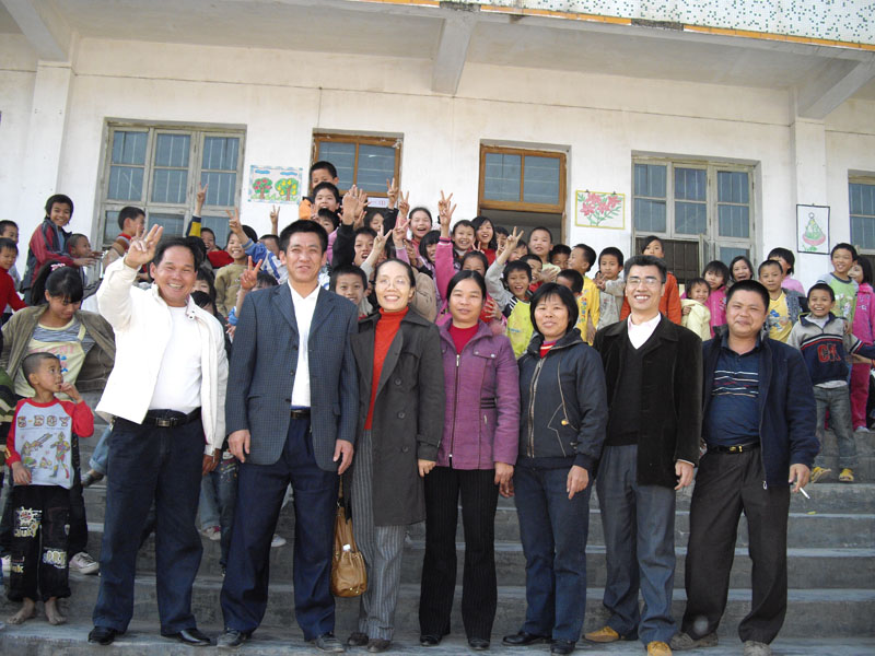 会后,支部一行来到小学走访。龙湾小学由一幢三层楼和一幢二层楼组成,校长介绍说二层楼是村里筹集10万资金前年建的,小学目前有学生500多人,教师24人,教学条件仍比较艰苦,听完介绍后党支部向小学捐赠了微波炉等物品。我们走出校长室,立刻被刚下课的学生们围住了,他们围住我们问这问那,我们被他们的热情所感染,高兴地和这些小主人们合影留念。