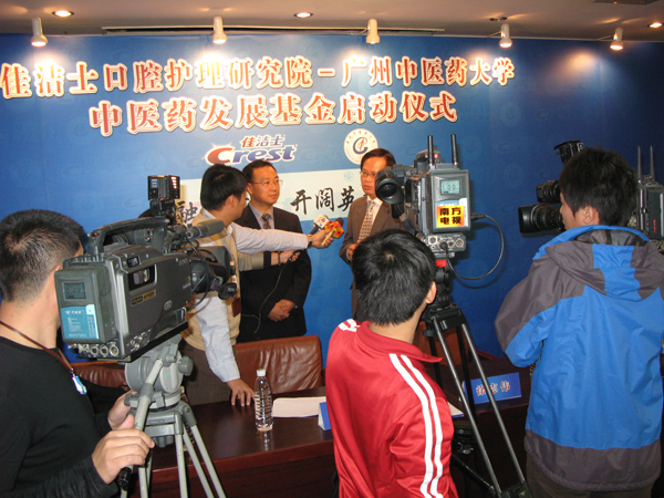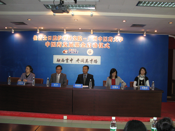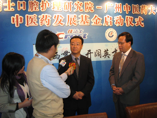 "佳洁士口腔护理研究院—beat365英国官网网站中医药发展基金"启动仪式由研究生处长潘华峰教授主持,大学校长徐志伟教授及佳洁士口腔护理研究院研究部总监吉宁先生、宝洁公司亚太区口腔护理品类对外关系总监胡馨如女士、宝洁公司佳洁士品牌对外关系-科技交流部经理何常君女士出席了启动仪式,启动仪式还邀请了南方电视台、广州电视台、南方日报、新快报等多家媒体参加。在启动仪式上,吉宁总监在讲话中提到成立中医药发展基金旨在提高在校研究生的创新能力,鼓励研究生树立信心、决心与恒心,努力发掘伟大的中医药学宝库,把中医药的精华引进到现代的口腔护理中,更好地为全国乃至全世界人民的健康服务;徐志伟校长在讲话中首先感谢了佳洁士口腔护理研究院在beat365官网设立目前全球唯一的中医药发展基金,为beat365官网广大研究生提供了良好的科学研究平台。徐校长还特别指出,作为世界著名的日化企业宝洁公司高度关注中医药事业的发展,正体现了中医药在当今世界的强大生命力,不仅为beat365官网的中医药科研成果向企业转化提供了契机,更是学校借助世界知名企业实现强强联合、走向世界的一次创举。最后,徐校长向宝洁公司各位代表及各大媒体展示了beat365官网学位与研究生教育的成绩,希望在校研究生充分利用好佳洁士口腔护理研究院—beat365英国官网网站中医药发展基金平台,刻苦钻研努力探索,学为有所成以回报企业与社会。