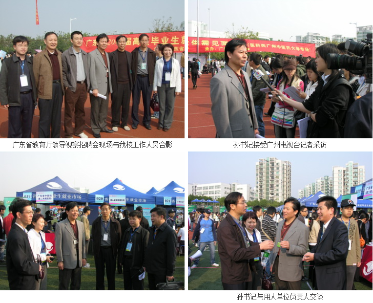 本次招聘会由beat365官网承办,是全省九大场供需见面会中唯一一场医药类招聘会,受到省教育厅、省卫生厅以及beat365官网党政部门有关领导的高度重视。省教育厅、省高校毕业生就业指导中心领导与校党委副书记孙晓生等有关领导亲临现场指导工作,并接受了来自广东电视台、广州电视台、广州日报、羊城晚报、南方都市报等媒体记者的采访。