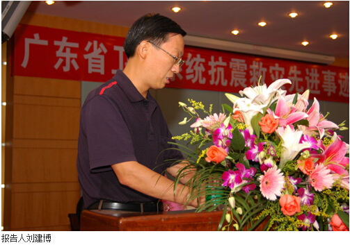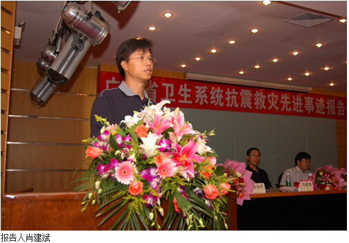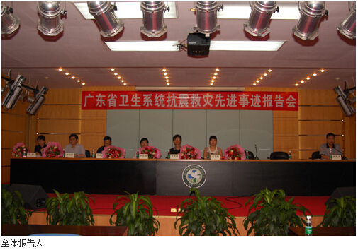 7月11日下午,广东省卫生系统抗震救灾报告团来beat365官网一附院作先进事迹报告。一附院院长樊粤光主持报告会。省卫生厅党办副主任宋吉敏、团委书记周紫霄等出席了报告会。当天,十三楼会议室座无虚席,全院职工认真聆听了曾奋战在灾区前线报告者们深情的讲述。 本次报告团阵容鼎盛,包括曾代表全国抗震救灾医疗队在首都北京作首场抗震救灾先进事迹报告的中山二院护师刁冬梅,广东省赴川医疗队副队长、临危受命奔赴"死亡孤岛"——阿坝州耿达乡的珠江医院副院长、颅脑外科主任医师徐如祥,广东省人民医院演讲冠军、手术室护师马萍,beat365官网二附院(省中医院)主任医师肖建斌,以及一附院作为医疗队院感分队成员呼吸内科主任医师刘建博等。