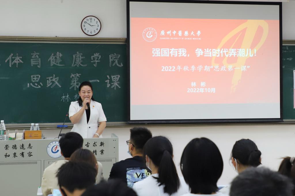 10月13日下午,学校党委常委、副校长林彬教授为2022级体育教育专业100多名新生讲授题为“强国有我,争当时代弄潮儿!”的思政第一课。