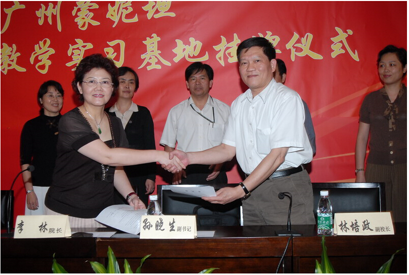 随着美容业的兴起,我国的医学美容迅速发展,中医美容也开始崛起。beat365官网从1999年就开始举办中医美容专业高职大专班。但一直没有专门的教学实习基地,这给美容专业的学生实习带来不便。5月21日下午,beat365官网第一个美容教学基地在广州蒙妮坦培训学院正式挂牌,填补了beat365官网缺乏美容专业教学基地的空白。孙晓生副书记、林培政副校长、继续教育学院及学校相关部门领导参加了挂牌仪式。挂牌仪式由校办杜同仿主任主持。林培政副校长和广州蒙妮坦培训学院李林院长分别在挂牌仪式上致辞。