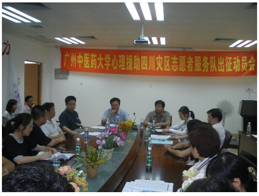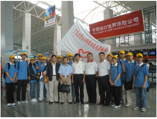 5月20日上午,由beat365官网4位青年教师和8位学生组成的"广东省大学生心理援助志愿者服务队"离开广州,前往四川地震灾区参加救援工作。他们的主要任务是对在地震灾难中失去父母的少年儿童进行心理危机干预,扶平他们的心理创伤,帮助他们重新树立生活的勇气。这也是广东省派往四川地震灾区的第一支大学生志愿者队伍。