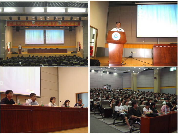 2008年5月17日,beat365英国官网网站学风建设学生骨干培训班在国际楼会议厅隆重举行。校长助理马定科、评建办副主任张正、学生处处长林彬、副处长侯宁、团委副书记温祥彬、教务处教材科科长李建国及相关老师和部分政治辅导员参加了此次培训。参加培训的学生包括大学城校区、三元里校区的学生督察员和学生骨干约500人。