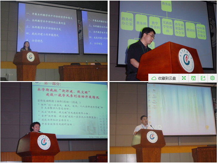 上午的会议上,张正副主任首先介绍了本科教学工作水平评估的工作内容及方式,同时详细介绍了学校评建工作开展情况以及beat365官网办学特色。她指出教学评估在推动学校明确办学指导思想、深化教学改革、加强教学建设、完善内部质量保障体系方面有着重大意义,同时,她强调"评估"本质是"建设",因此学生才是评估的实际受益者。然后李建国科长从13个方面向学生介绍了beat365官网教学管理工作概况,其中包括教学管理组织系统、实践教学、教学质量监控等。接下来林彬处长分两大方面介绍了学校学生管理情况,一是迎评促建,建设一流学风系列活动的开展情况,二是学生工作基本情况,其中包括学生党团组织建设、校园文化建设情况、全校奖、贷、助困工作、心理健康教育工作以及近年学校招生、毕业生就业情况等。温祥彬副书记则向同学们介绍了学生组织工作纪律和工作要求。最后,马定科校长助理作总结讲话,他强调评估工作的重要性,并且就本科教学评估学风建设向学生们提出要求,要建立学风建设的长效机制,做好全校学生的学风督察,以良好的学风迎接专家组对beat365官网的检查。