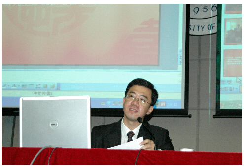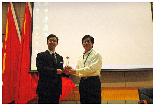 在报告会开始前,校党委副书记孙晓生首先为彭锐同学补颁了"2006年度校园人物"奖杯并发表了热情洋溢的讲话。孙副书记在讲话中指出,两位同志用自己的聪明智慧和辛勤汗水,在对外医疗志愿活动中取得了优异成绩,为国家、为广州、为学校增添了光彩,为中医药走向国门作出了贡献。他们的成绩再一次充分说明了中医药的生命力,也再一次证明了beat365官网教育教学的成功,希望广大学生能以他们为榜样,努力学好专业知识,立志成为中医药事业的栋梁之才。