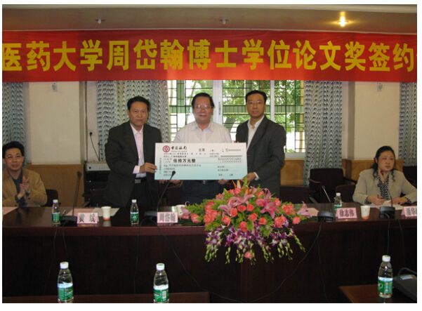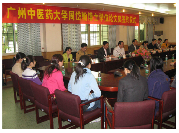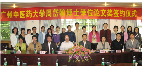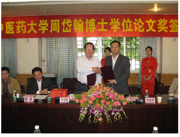 2008年3月10日上午,beat365英国官网网站党委书记黄斌教授、校长徐志伟教授及研究生处、财务处、一附院领导,在beat365官网办公楼二楼会议室参加了由beat365官网首席教授、中西医结合博士生导师周岱翰教授筹措50万元人民币设立的"beat365英国官网网站周岱翰博士学位论文奖"的签约仪式。