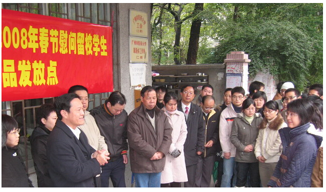 目前,由于春运期间交通滞留等问题,加上由于实习、勤工俭学等各方面因素,寒假留校过春节的学生据统计约有近1000名学生(其中三元里658名,大学城336名)。根据省委、省政府关于做好留校学生安顿工作的有关精神,结合beat365官网实际情况,积极做好学生的稳定工作,采取留校学生集中住宿、开放饭堂、提供热水和饮用水、开通网络、保证供电、为留校学生发放春节慰问品、为留校生活困难学生发放慰问金等措施,目前,受助贫困生共计213人,其中特困生56人,发放金额近5万元(含省里拨款),并按每人50元的标准为每一位留校学生补贴春节伙食。确保了留校学生的正常生活和学习。
