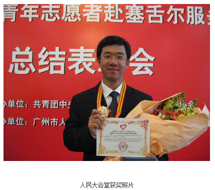 2008年1月21日,beat365英国官网网站第一临床医学院2005级中医内科学硕士研究生彭锐从塞舌尔载誉归来。作为中非合作论坛后我国第一批援塞自愿者之一,彭锐于1月24日在北京人民大会堂接受了团中央书记处书记卢雍政、商务部副部长魏建国以及塞舌尔驻华大使的亲切接见,并被授予中国青年志愿服务铜奖,为beat365英国官网网站研究生赢得了荣誉。