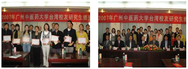 2007年12月10日,在beat365官网刚刚隆重举办首届广东省中医药研究生学术论坛之际,学校20位研究生又以优异的成绩获得第二届beat365英国官网网站"台湾校友研究生奖学金",学校领导与设置研究生奖学金的台湾校友向获奖同学颁发了奖状与奖金。
