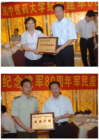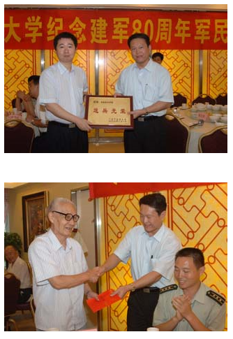 与会学校领导向武装工作先进单位颁奖,并分别向老红军、烈军属、伤残军人、抗日战争、解放战争时期参加革命的老同志颁发慰问金。随后,大家欢聚一堂,畅叙军民鱼水深情,共同回顾我军建军80周年的光辉历程。