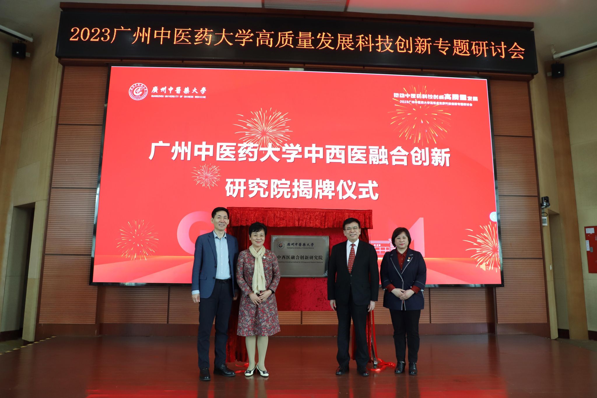 会上,学校党委书记张建华、校长王伟、中国工程院院士刘良和第二附属医院(广东省中医院)党委书记史俏蓉为“beat365英国官网网站中西医融合创新研究院”揭牌。