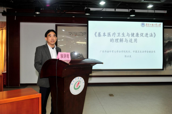11月16日下午,学校在办公楼101学术报告厅举办《基本医疗卫生与健康促进法》专题讲座。本次讲座由王伟校长主持,中国卫生法学会副会长、广东外语外贸大学法学院院长陈云良教授做了精彩演讲。