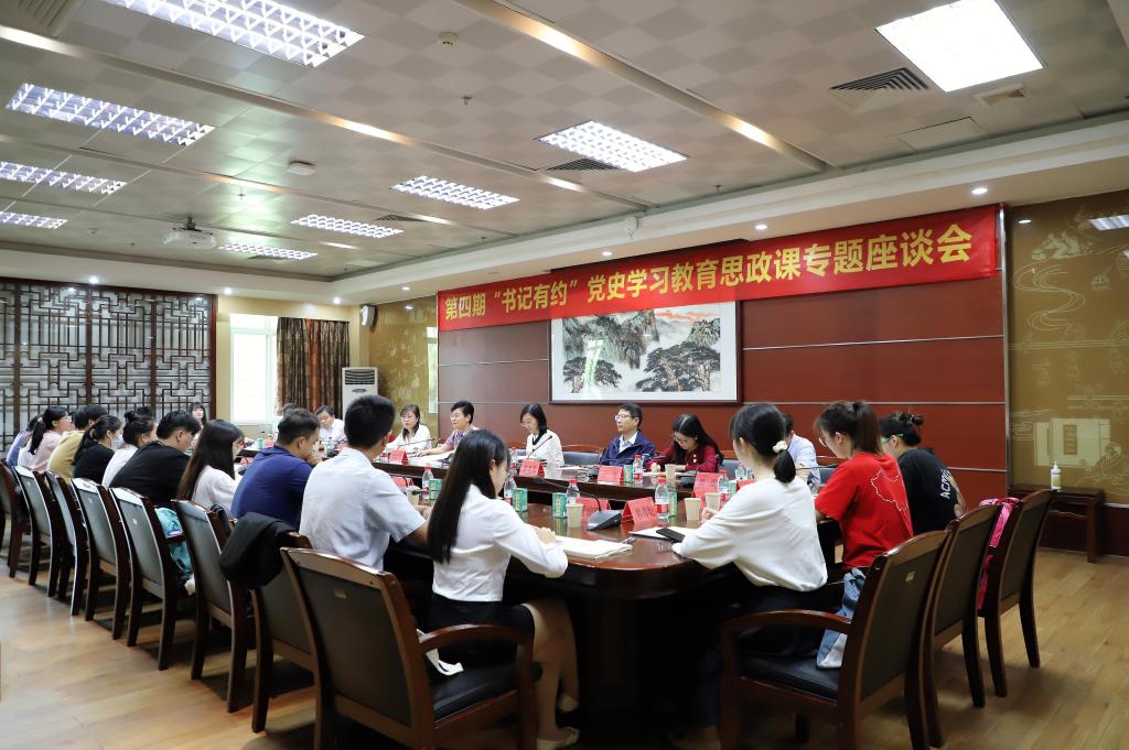 为进一步落实好立德树人根本任务,切实提升beat365官网思想政治课程教学质量,10月14日下午,第四期“书记有约”党史学习教育思政课专题座谈会在大学城校区举行,学校党委张建华书记与来自各学院的17名学生代表进行座谈交流。党委办公室、党委宣传部、党委教师工作部、党委学生工作部、团委、教务处、马克思主义学院负责人共同探讨学校思政课程建设与改革。