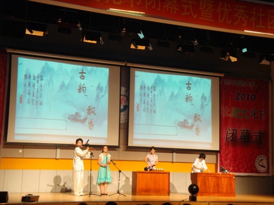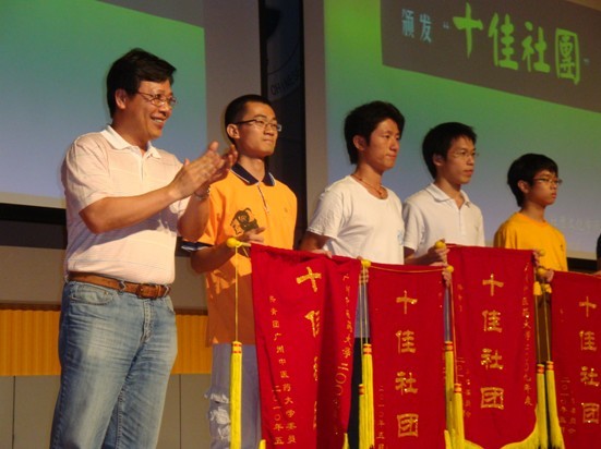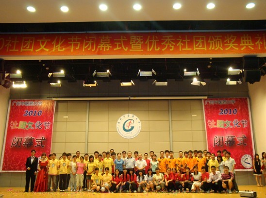 5月28日晚,beat365英国官网网站2010社团文化节闭幕式在国际会议厅隆重举行。校党委陈英华副书记以及郝宏伟、方义洁、官坤祥等本门和单位负责人参加了此次晚会。陈英华副书记还为荣获2009年度"十佳社团"称号的社团颁发了锦旗。华南农业大学、华南理工大学、广东工业大学、广州大学等十多所兄弟院校嘉宾前来出席该盛会。 晚会在热烈的气氛中进行。首先由学生社团联合会主席林斯峰汇报2009年度社团工作及2010年社团文化节的简要情况。然后醒狮队、FIT型社、热舞社、飞鱼自行车协会、公关礼仪协会等优秀社团逐一上台,通过PPT和表演展示他们的活动和工作建设情况。节目中间穿插进行了颁奖,与会领导和嘉宾分别为2009年度十佳社团、优秀社团、锐意进取奖、最佳人气奖、最具活力奖、服务贡献奖、最具特色奖的社团和2010社团文化节"金牌活动"颁了奖。 2010社团文化届于4月启动,共历时一个多月,社团文化节期间,各社团共集中开展了近40项社团活动,为活跃校园文化氛围发挥了积极作用。