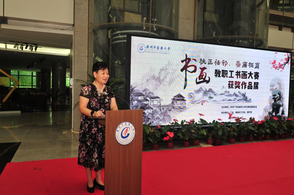 张建华在致辞中强调,举办“扶正祛邪、崇廉拒腐”主题教职工书画大赛获奖书画作品展,既是学校党委、学校纪委为庆祝党的百年华诞的倾情献礼,又是2021年纪律教育学习月的一项重要活动,既是传播校园廉政文化的具体举措,更是深入贯彻全面从严治党方针,推动学校党风廉政建设的生动体现。用传统的书画艺术形式宣传反腐倡廉的时代内容,是开展廉政文化建设的一个重要载体,也是加强党风廉政建设的一个有效途径。
