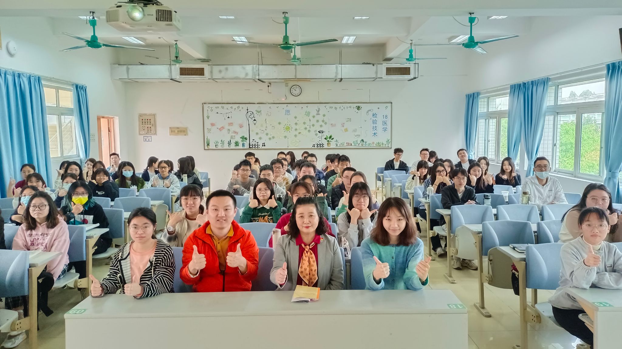 3月13日上午,学校党委常委、副校长潘华峰以“以中国式现代化推动在中医药高质量发展新赛道上奋力冲刺”为题,在大学城校区教学楼B410课室为第二临床医学院2020级医学检验技术专业上新学期”思政第一课“。