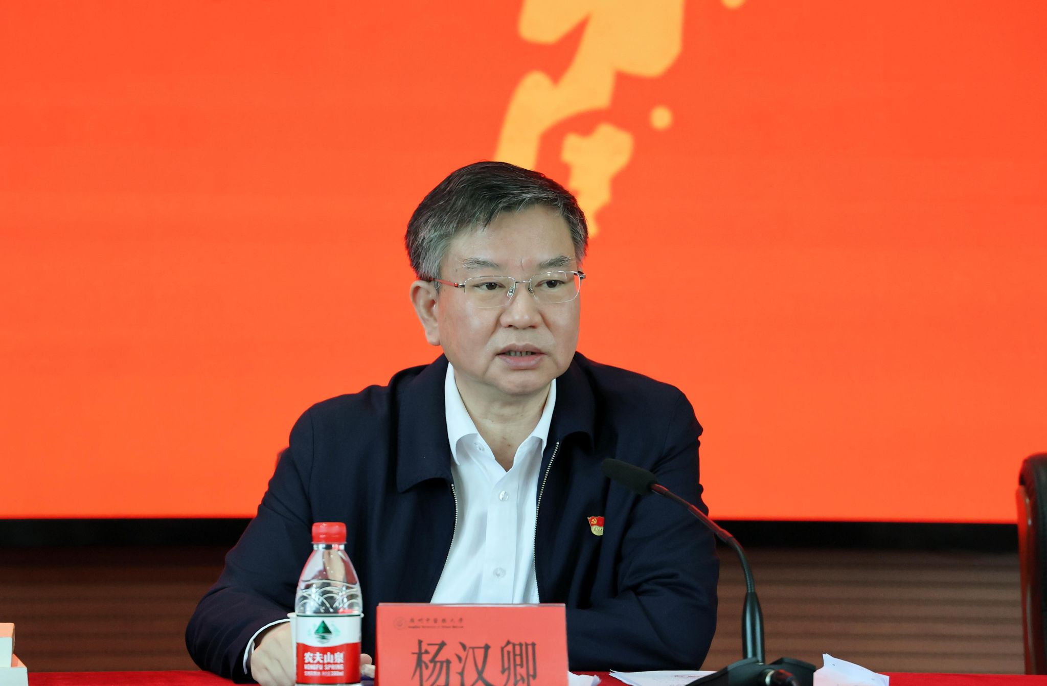 杨汉卿围绕学习贯彻习近平总书记重要讲话精神以及党中央部署和省委工作要求,结合省委巡回指导组工作职责,就落实主题教育各项任务提出六点要求。一是提高政治站位抓落实求实效。要深刻认识开展主题教育的重大政治意义、理论意义和实践意义,深入学习贯彻习近平总书记关于教育的重要论述和最新指示批示精神,坚持党在高校的全面领导,坚持社会主义办学方向,胸怀“国之大者”,为党育人,为国育才,确保学校教学科研、学科建设和社会服务面向中医药学科技前沿、面向人民生命健康、面向国家重大需求、面向广东经济社会发展。二是牢牢把握总要求抓落实求实效。要把开展主题教育与围绕中心、服务大局结合起来,着力推动中医药高质量发展,着力建设高水平医护队伍,着力提高中医诊疗水平。三是紧紧锚定根本任务抓落实求实效。把习近平新时代中国特色社会主义思想转化为坚定理想、锤炼党性和指导实践、推动工作的强大力量,努力在以学铸魂、以学增智、以学正风、以学促干方面取得实实在在的成效。四是围绕具体目标抓落实求实效。要坚持目标导向和问题导向相结合,以具体目标为牵引,以解决问题为抓手,有的放矢、精准发力推动各项任务落地落实。五是贯通重点措施抓落实求实效。要把理论学习、调查研究、推动发展、检视整改贯通起来,有机融合、一体推进。聚焦培养高质量中医药人才、构建中医药科技高地、提升中医诊疗水平等重点工作,凝心聚力促发展、驰而不息抓落实。六是力戒形式主义抓落实求实效。防止形式主义,解决实际问题,确保工作质量。