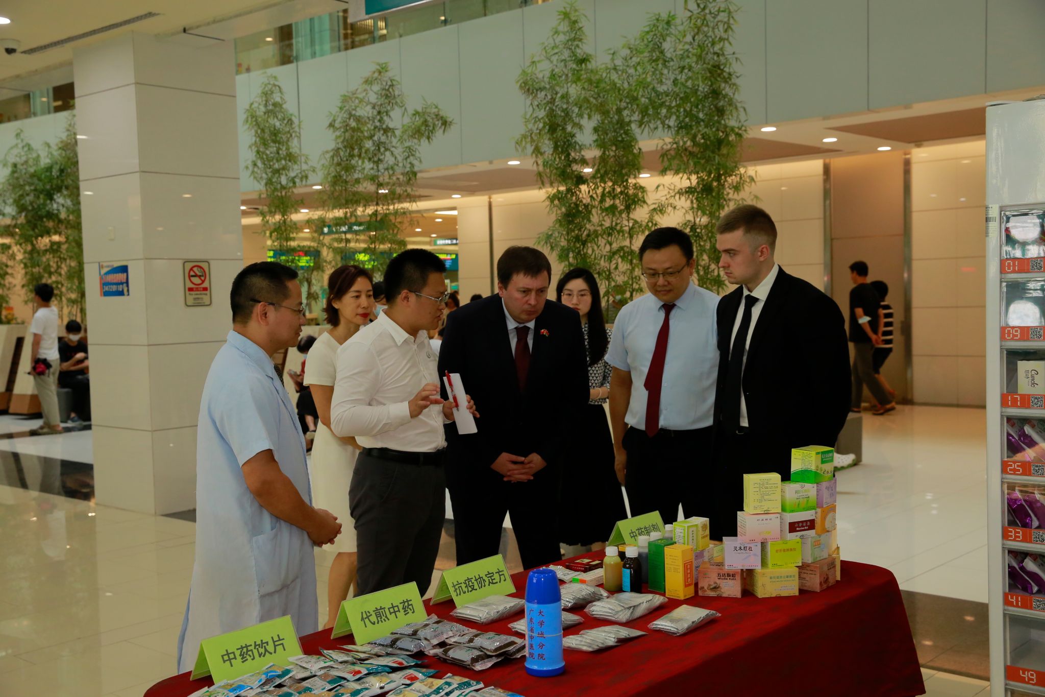 随后,代表团一行参观了第二附属医院(广东省中医院)大学城医院,了解智慧药房的运作,并在传统疗法中心观看推拿手法演示和体验飞针、火针、雷火灸、耳穴压豆等中医特色疗法。