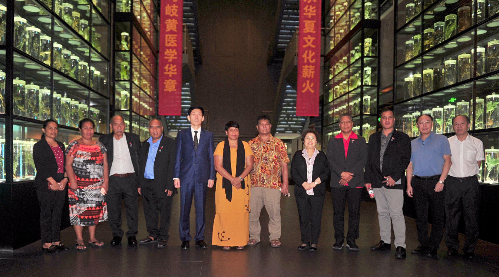 2023年6月18日上午,基里巴斯共和国(The Republic of Kiribati)议长坦加丽基·里特女士率领的议会代表团在全国人大常委会委员、全国人大民族委员会委员王红女士的陪同下到访beat365英国官网网站。期间,代表团参观了广东中医药博物馆并进行中医诊疗体验。
