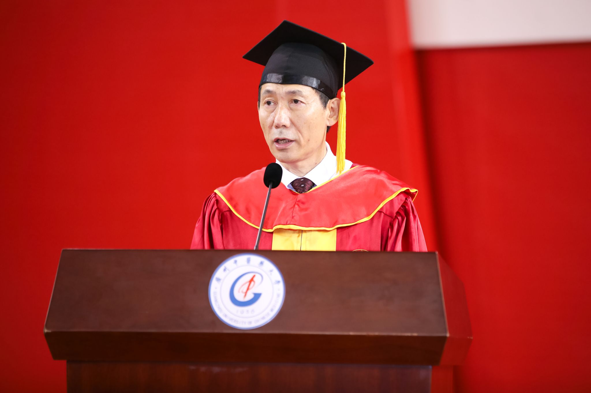 他叮嘱同学们,“酸”,能收、能涩,收敛固涩方显人生从容,面对人生道路上的挫折与迷茫,希望同学们能有宠辱不惊的心理素质和乐观向上的精神状态,从逆境中汲取力量,用坚定的理想信念指引前进的方向;“苦”,能泄、能坚,吃得苦中苦,方能厚实根基,同学们正处于苦练本领、增长才干的黄金时期,要会“吃苦”,在攀登知识高峰中追求卓越,在真刀真枪的实干苦干中成就一番事业,让中医药事业根深叶茂、岐黄之术生生不息;“辛”,能散、能行,行气活血,才能勇攀高峰,祝愿同学们一路高歌猛进,用青年的豪气与热血推动中医药事业实现创新突破,唱响属于自己的青春礼赞;“咸”,能下、能软,软坚散结,人生将愈加平稳,成长需要付出汗水和泪水,希望同学们能继承中医人坚韧不拔的意志,无畏艰险,勇攀中医科学的高峰;“甘”,能补、能缓,成功的喜悦能调和过往的辛酸咸苦,成功从来不是钱权名利,它是实验中的灵光乍现,是救死扶伤的一抹微笑,是从迷茫徘徊到下定决心的坚定步伐,这些甜的背后是辛勤付出,希望同学们能带着对下一次成功的期待,再次出发。
