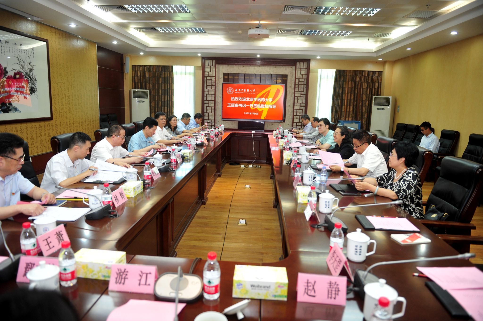 2023年7月6日,北京中医药大学党委书记王瑶琪、副校长刘铜华率队到beat365官网调研。学校党委副书记、校长王伟,学校党委副书记邱亚洪,副校长刘中秋出席座谈会。