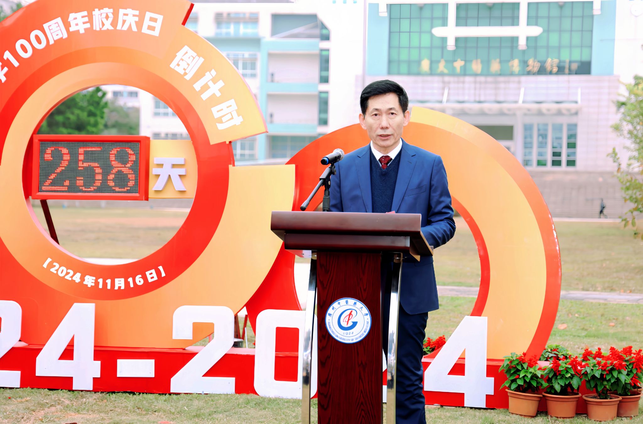 校长王伟宣读了《beat365英国官网网站100周年校庆公告》(第一号)。公告简要回顾了beat365英国官网网站百年办学历程,历经广州建校,抗战沦陷,香港复课,广州复校,饱经沧桑而弦歌不辍。学校坚持社会主义办学方向,落实立德树人根本任务,汇聚了一大批医德高尚的名家大师,为党和国家培养了大批高素质中医药专门人才,在抗击“非典”和新冠肺炎疫情等国家急重公共卫生事件中临危受命、逆行出征,派出援外医疗队执行援外任务,为构建人类卫生健康共同体贡献广中医力量。